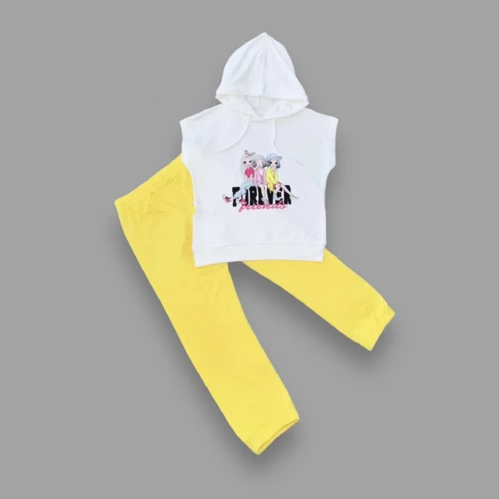 3-4-5 Yaş Forever Cici Kızlar Baskılı Kapşonlu 2li Kız Çocuk Takımı Sarı
