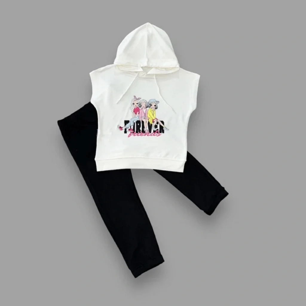 3-4-5 Yaş Forever Cici Kızlar Baskılı Kapşonlu 2li Kız Çocuk Takımı