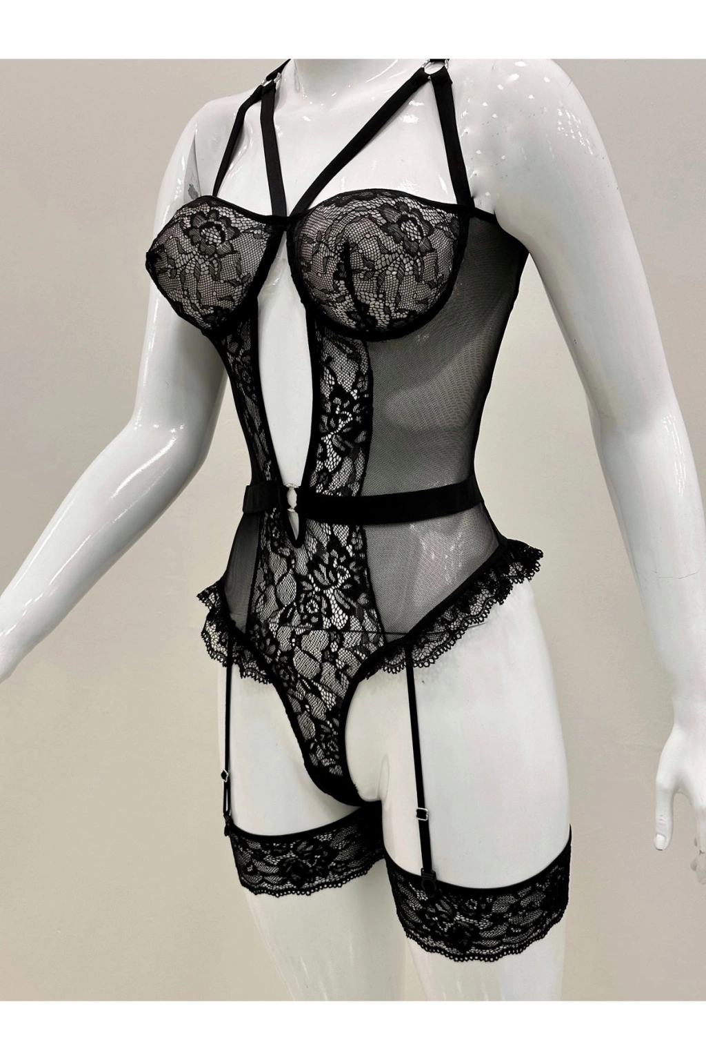 Dantel bodysuit ,Jartiyer lastikleri, iki adet bacak bandı mevcuttur.