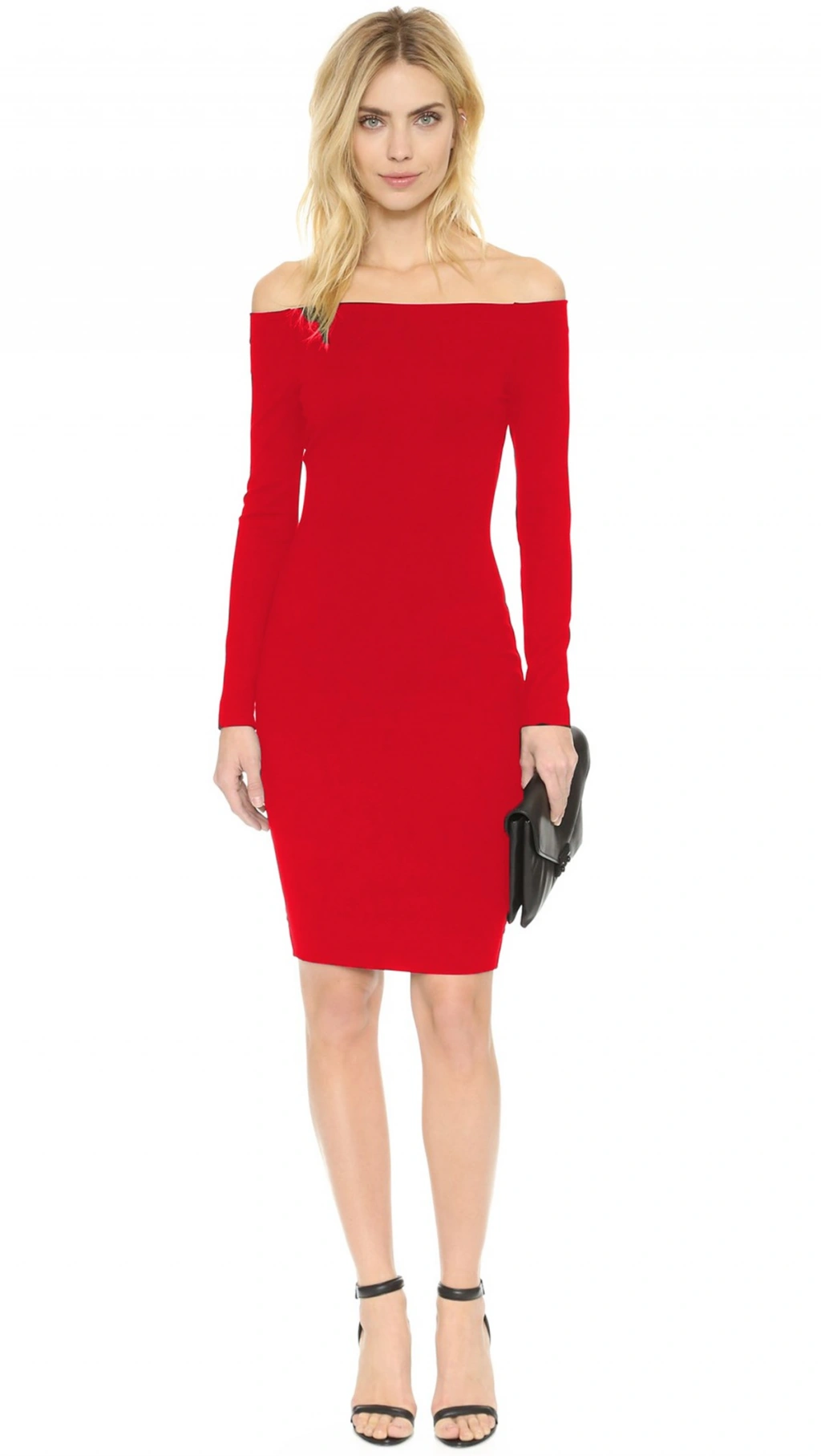 Uzun Kollu straplez elbise. Omuz dekolteli midi elbise. Esnek likralı kumaştan üretilmiştir. Beden ve renk seçenekleri mevcuttur.