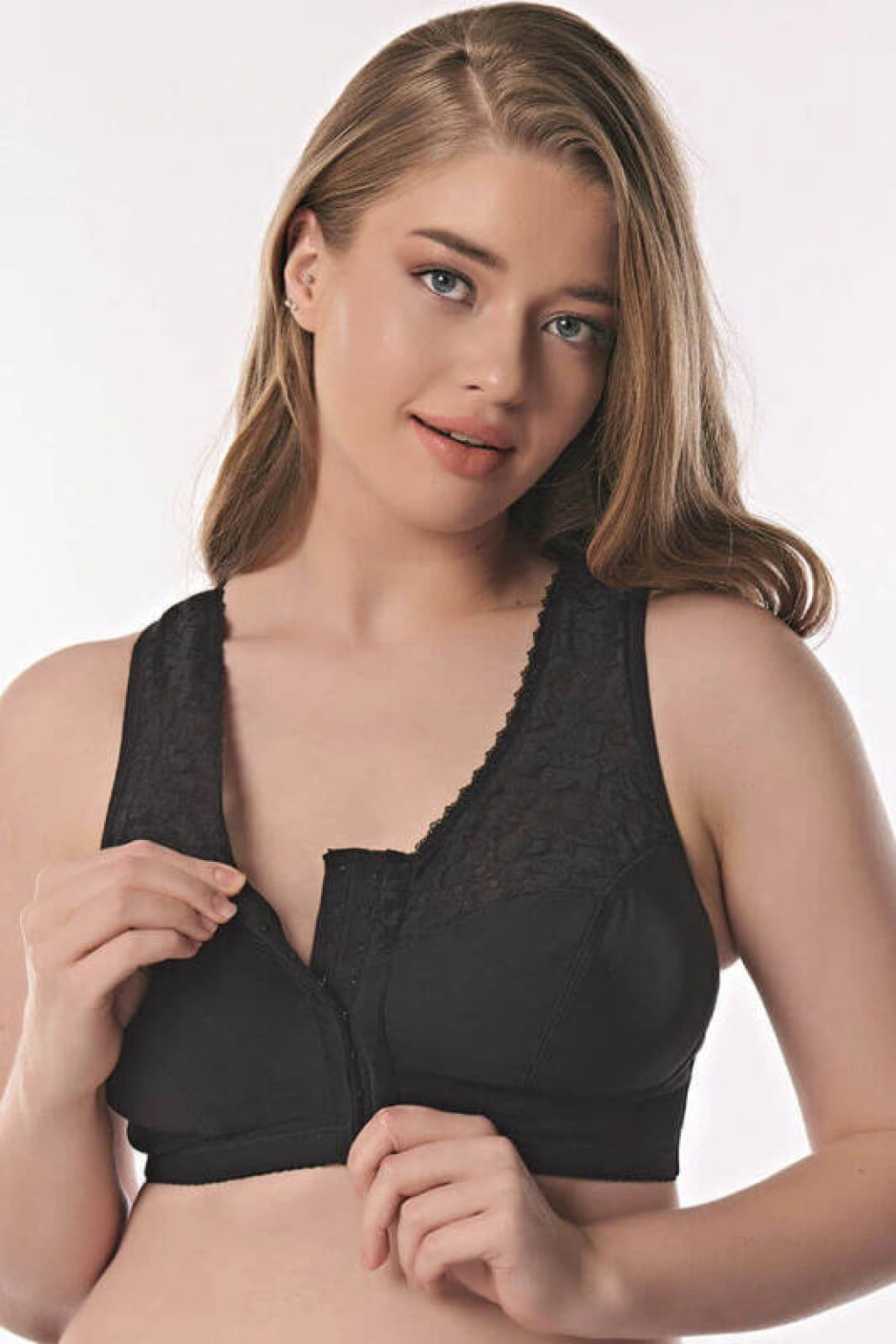 80B, 85B, 90B, 95B, 100B beden seçeneği bulunan Kadın Desteksiz Toparlayıcı Önden Açılan Sırt Destekli Küçültücü Sütyen 3775; Siyah ve Beyaz renk alternatifleriyle ’da...