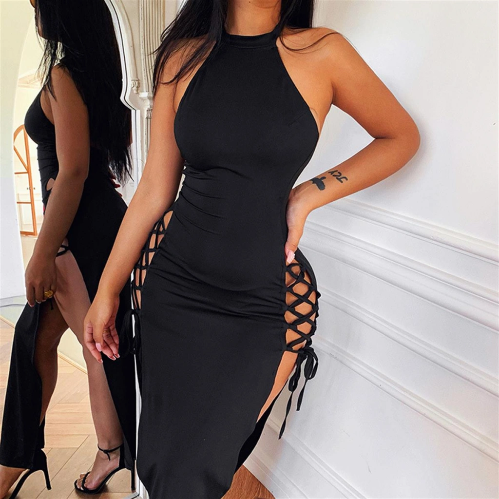 Esnek likralı dabany kumaştan üretilmiş derin yırtmaçlı elbise. Fantazi giyim ve gece giyim sevenler için klasik bir tercih. Vücudunuzu sarar ve müthiş bir görünüm elde edersiniz.