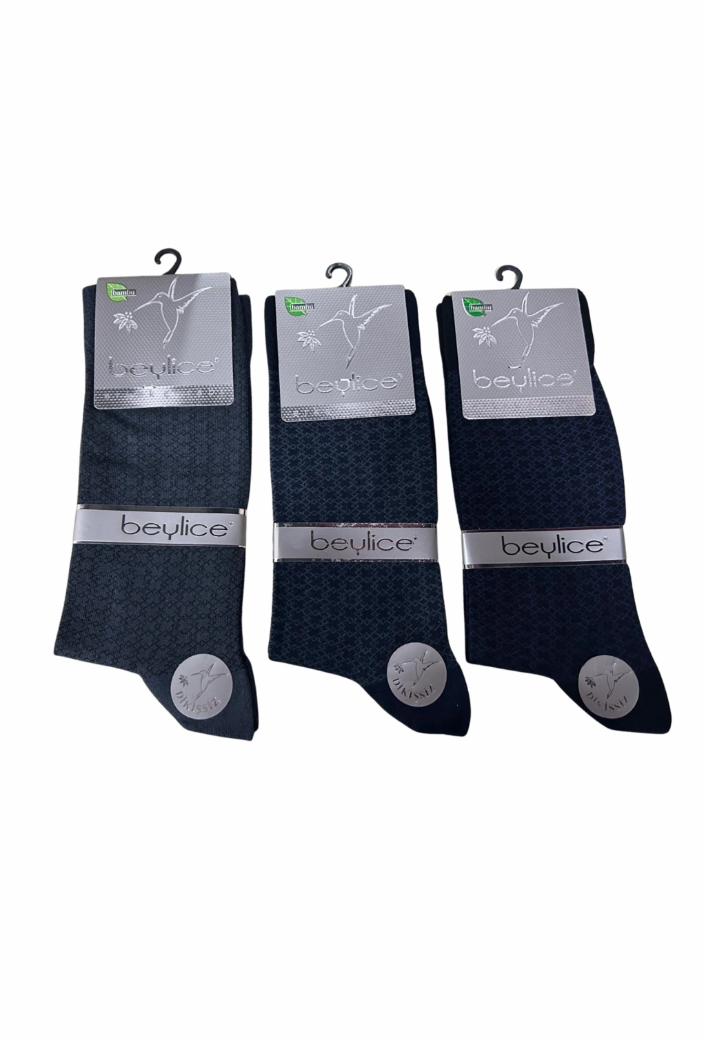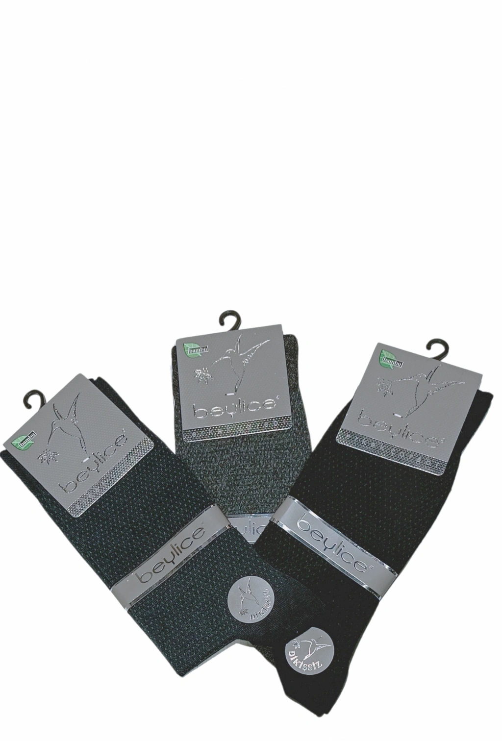 Beylice Desenli Bambu Dikişsiz Erkek Çorabı -sıkmayan Lastik- Tavşan Kulağı Kavrayan Topuk 12 Adet