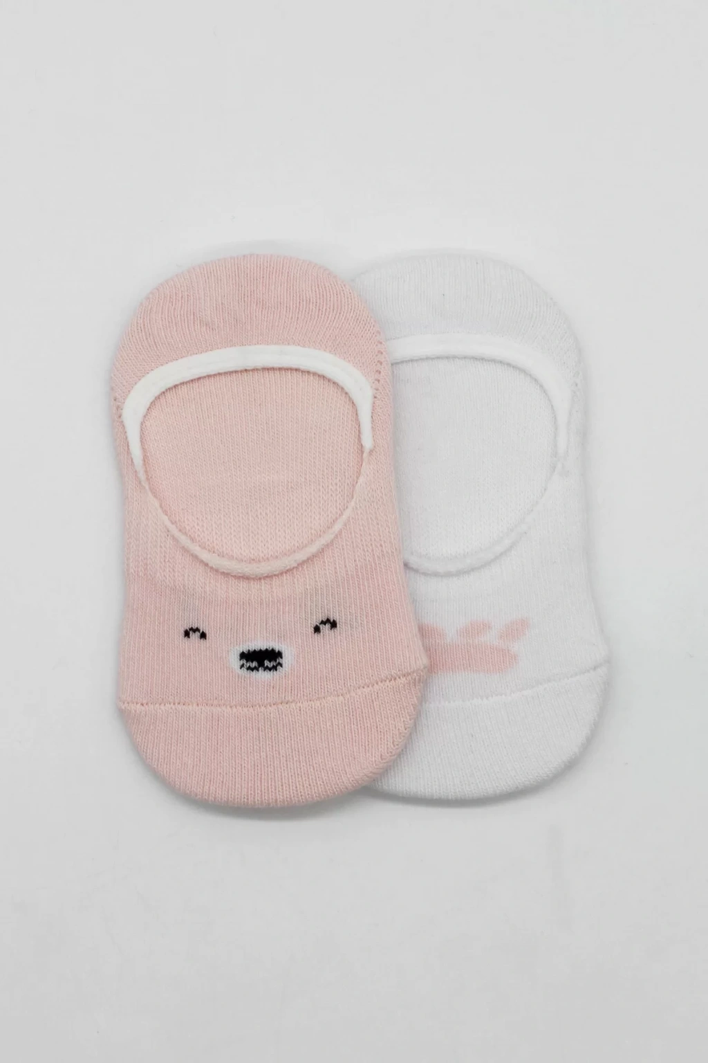 Bistyle 2'li Babet Cute Face Penye Çorap 30103 Pembe-beyaz