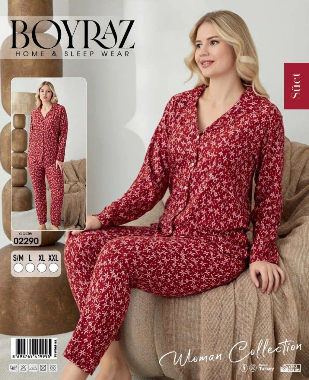Boyraz 08031 Kadın Patlı Uzun Kol Pijama Takımı