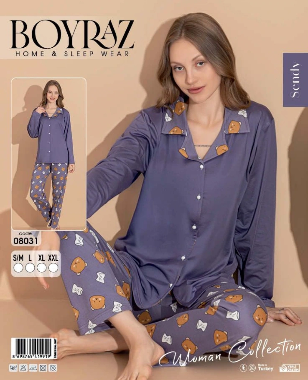 Boyraz 08031 Kadın Patlı Uzun Kol Pijama Takımı