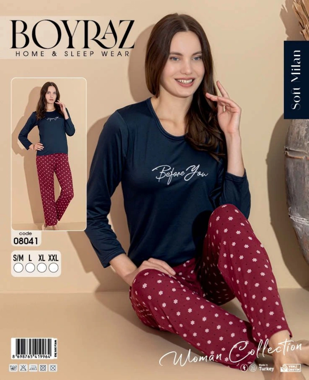 Boyraz 08041 Soft Milan Kumaş Uzun Kol Pijama Takımı