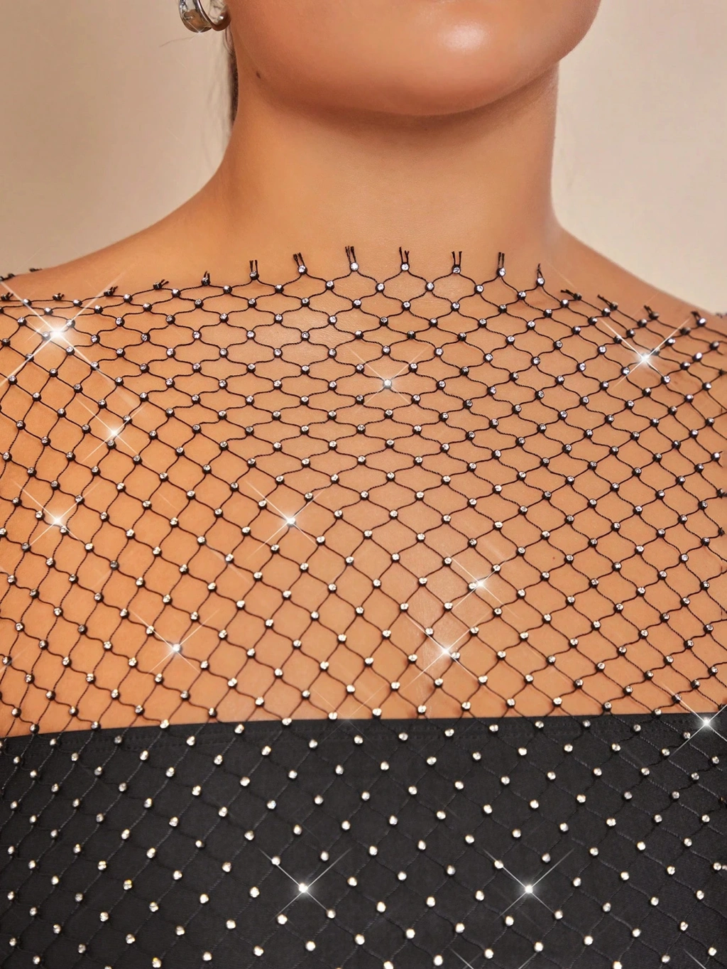Kadın Siyah Kristal Taşlı File Elbise – Plaj Ve Gece Şıklığı İçin
