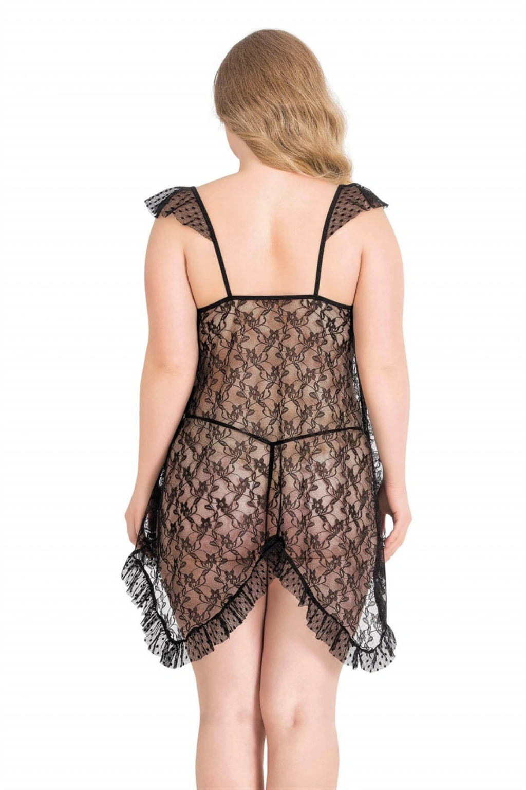 Büyük Beden Siyah Kısa Tül Gecelik 3021