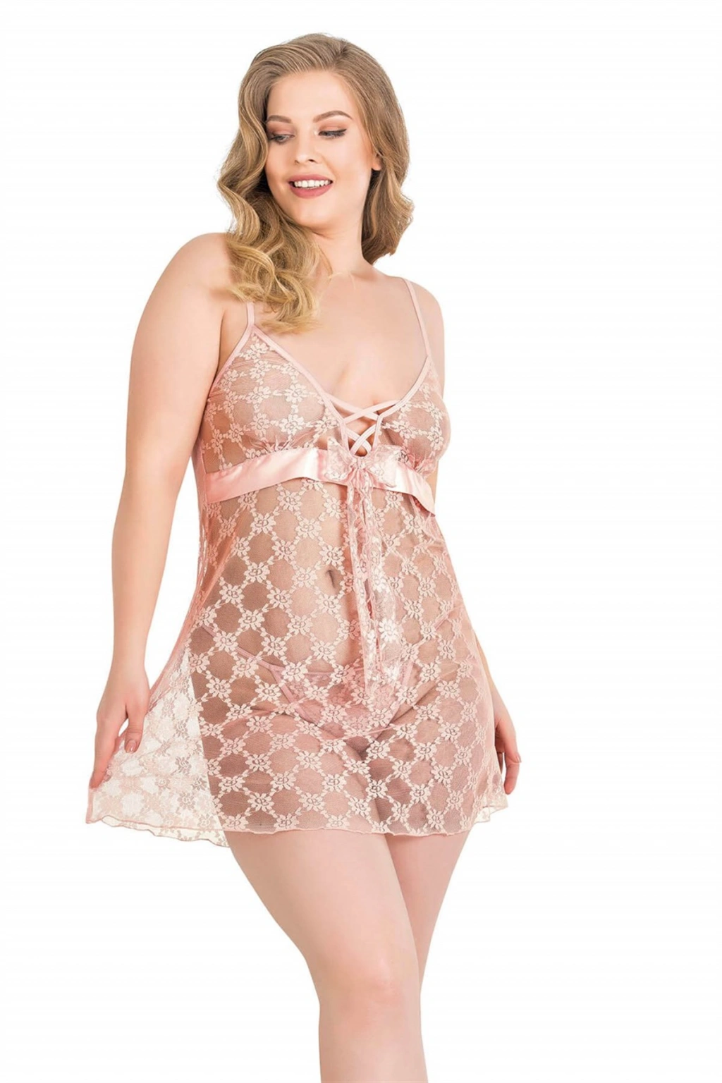Büyük Beden Somon Kısa Tül Gecelik 3030