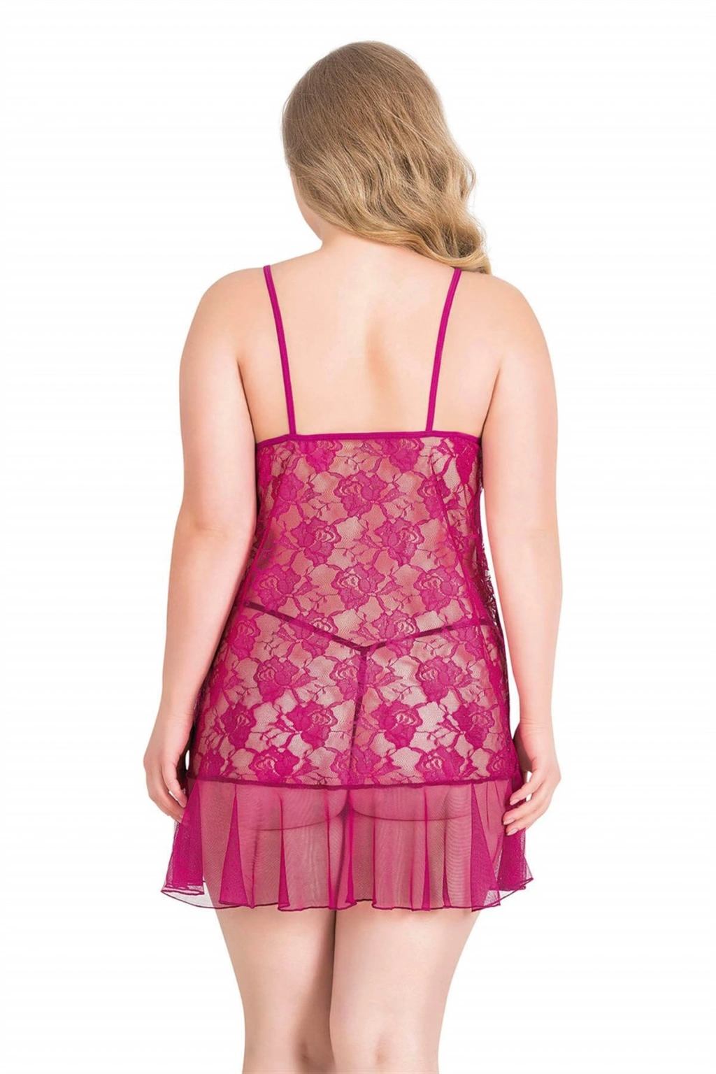 Büyük Beden Vişne Kısa Tül Gecelik 3028