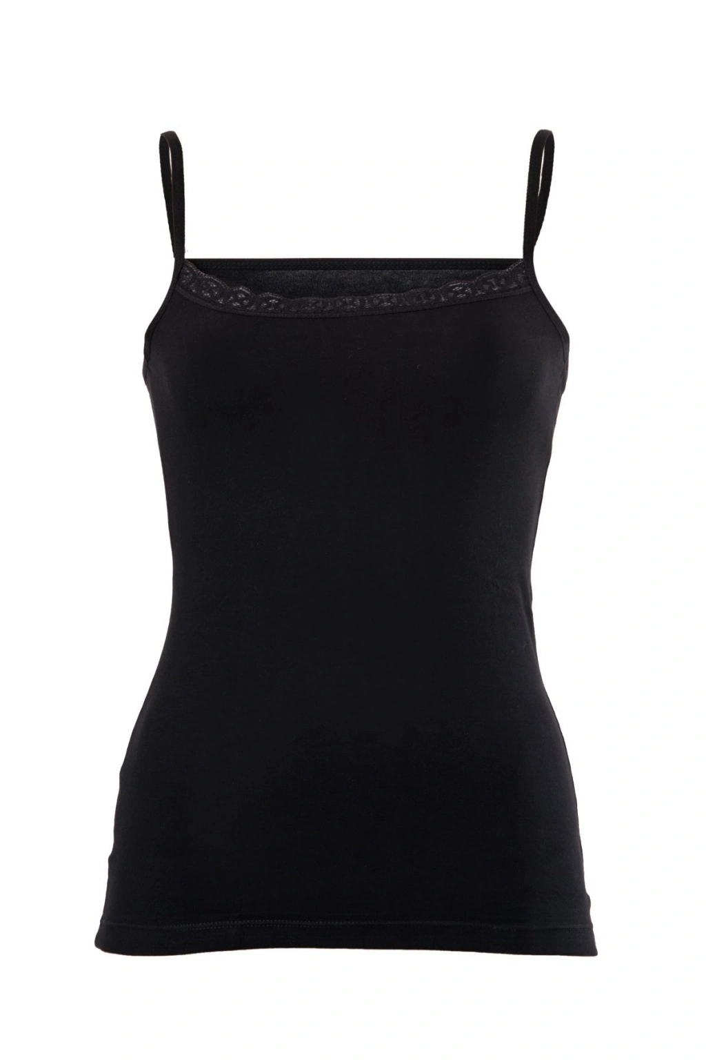 Kadın Siyah Normal Kalıp Dantel Detalı Ince Askılı Oyuk Yaka Atlet