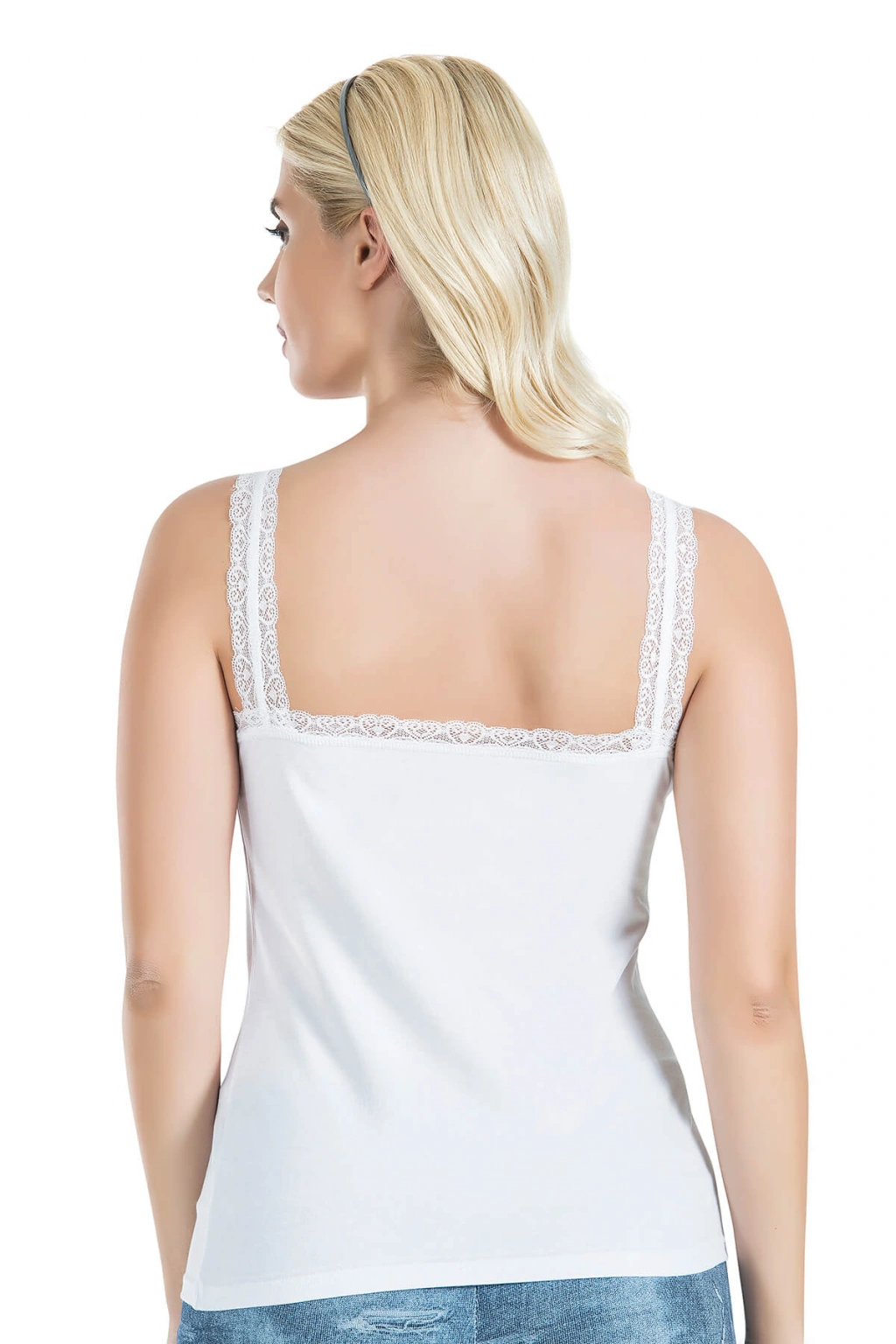 Kadın Beyaz Normal Kalıp Dantel Detalı Ince Askılı Oyuk Yaka Atlet