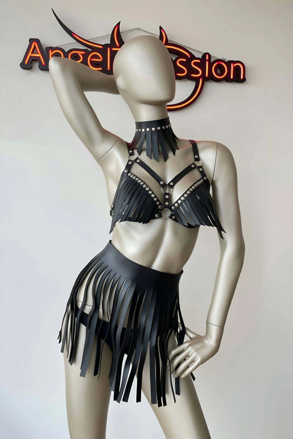 Deri Püsküllü Etekli Fantazi Harness Takım