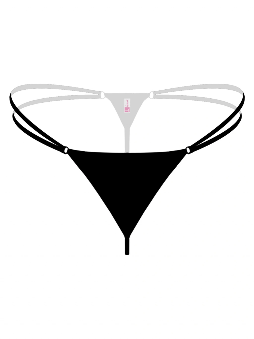 Siyah V Metal Aksesuarlı Fantezi String Tanga
