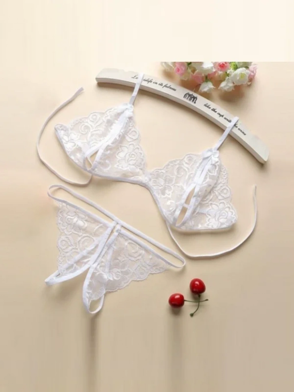 Fantezi Beyaz Dantelli Seksi Sütyen Kilot Takım