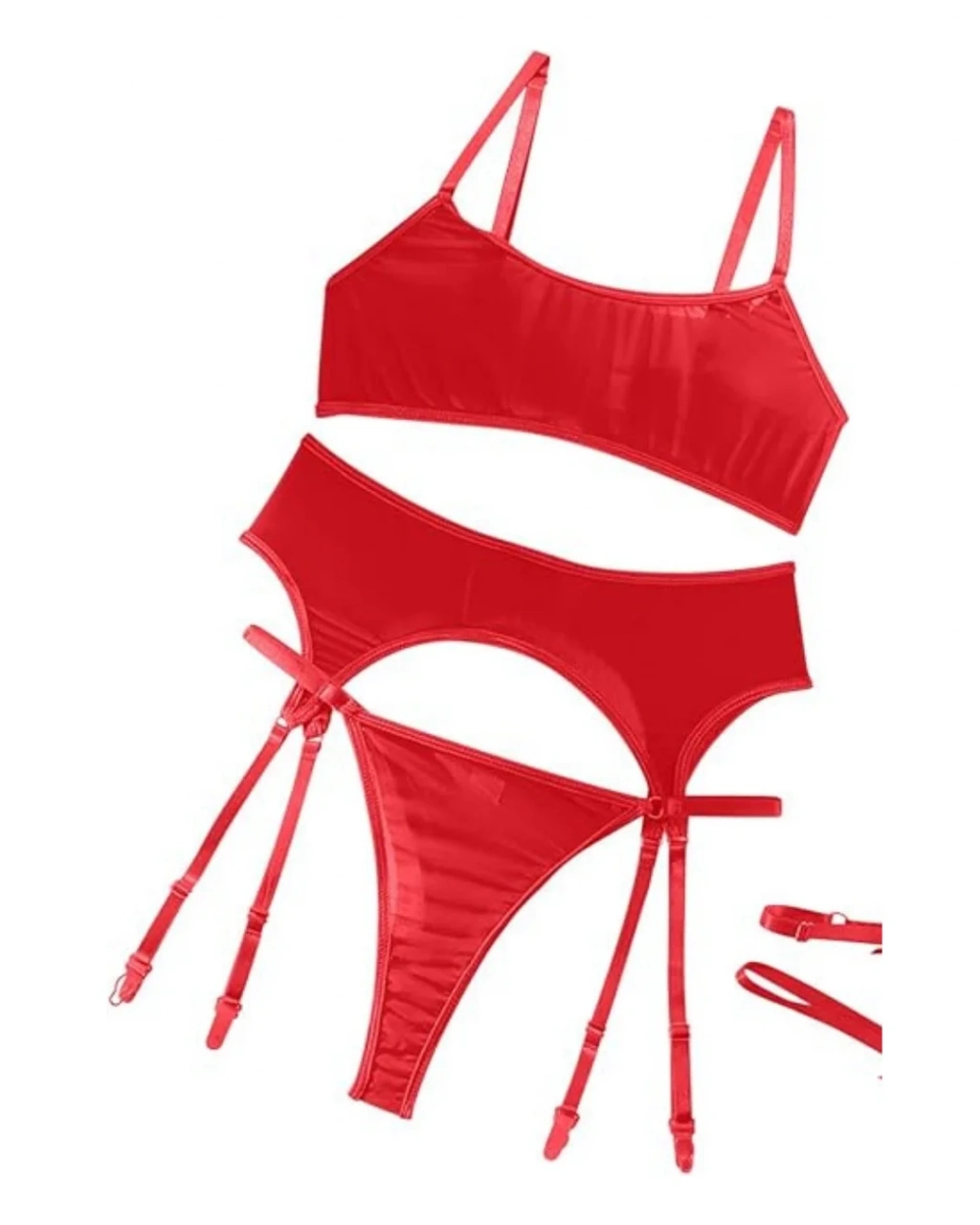 Fantezi Kırmızı Transparan Tül Jartiyer Takımı