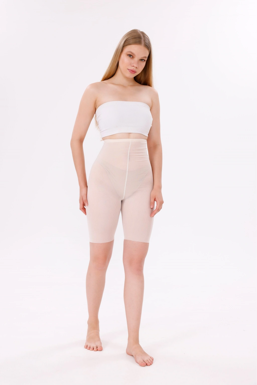 Toparlayıcı Bel Ve Bacak İnceltici Dikişli Uzun Paçalı Orta Bel Sıkı Şort Korse