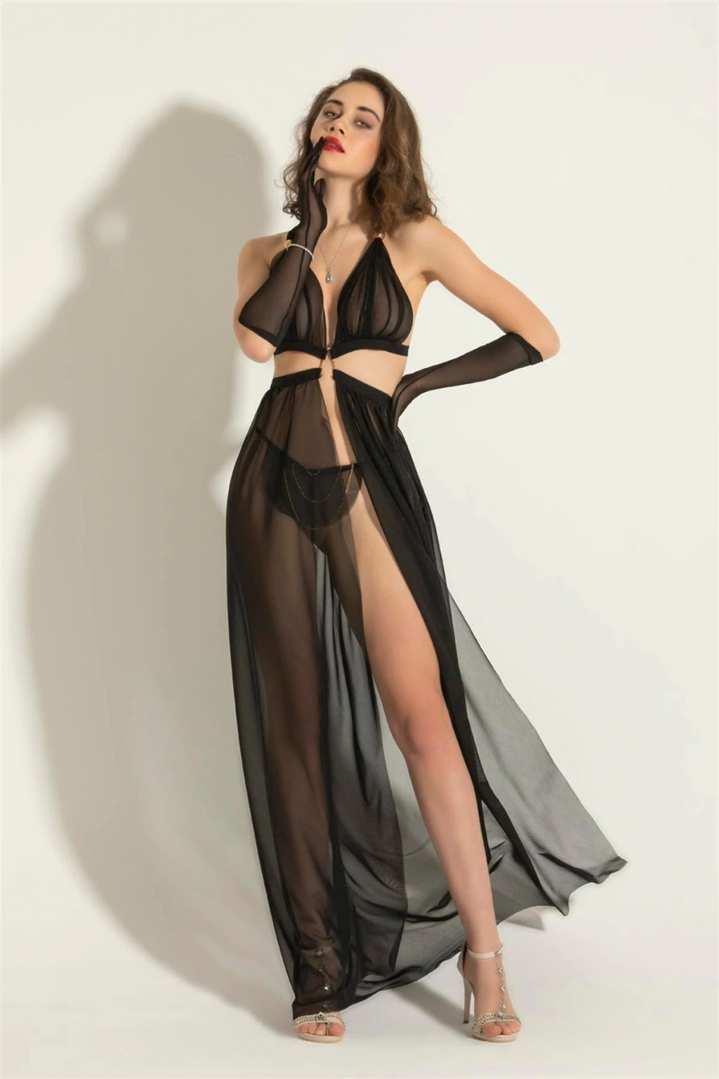 Gallipoli 6132 Bayan Transparan Elbise String Takım