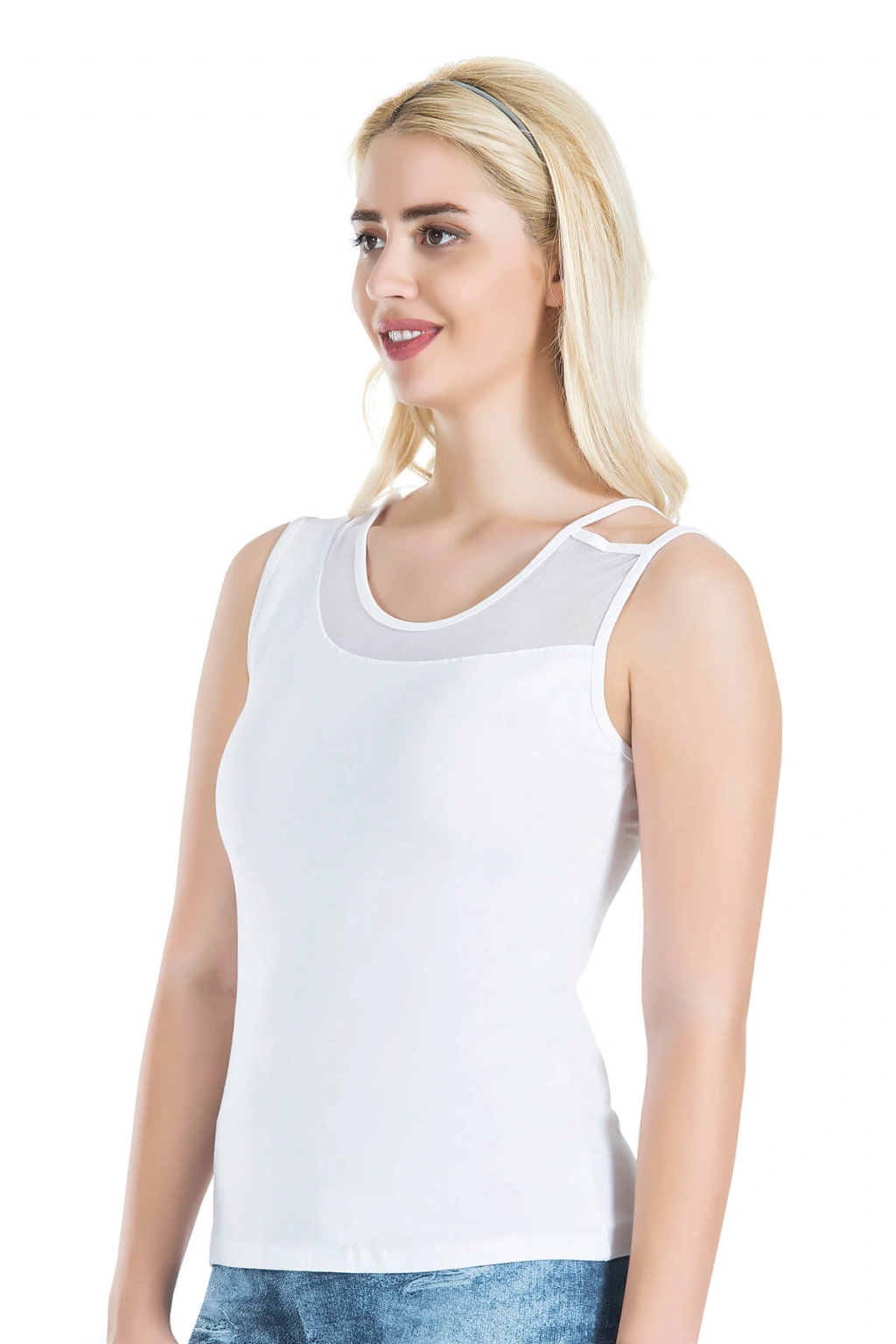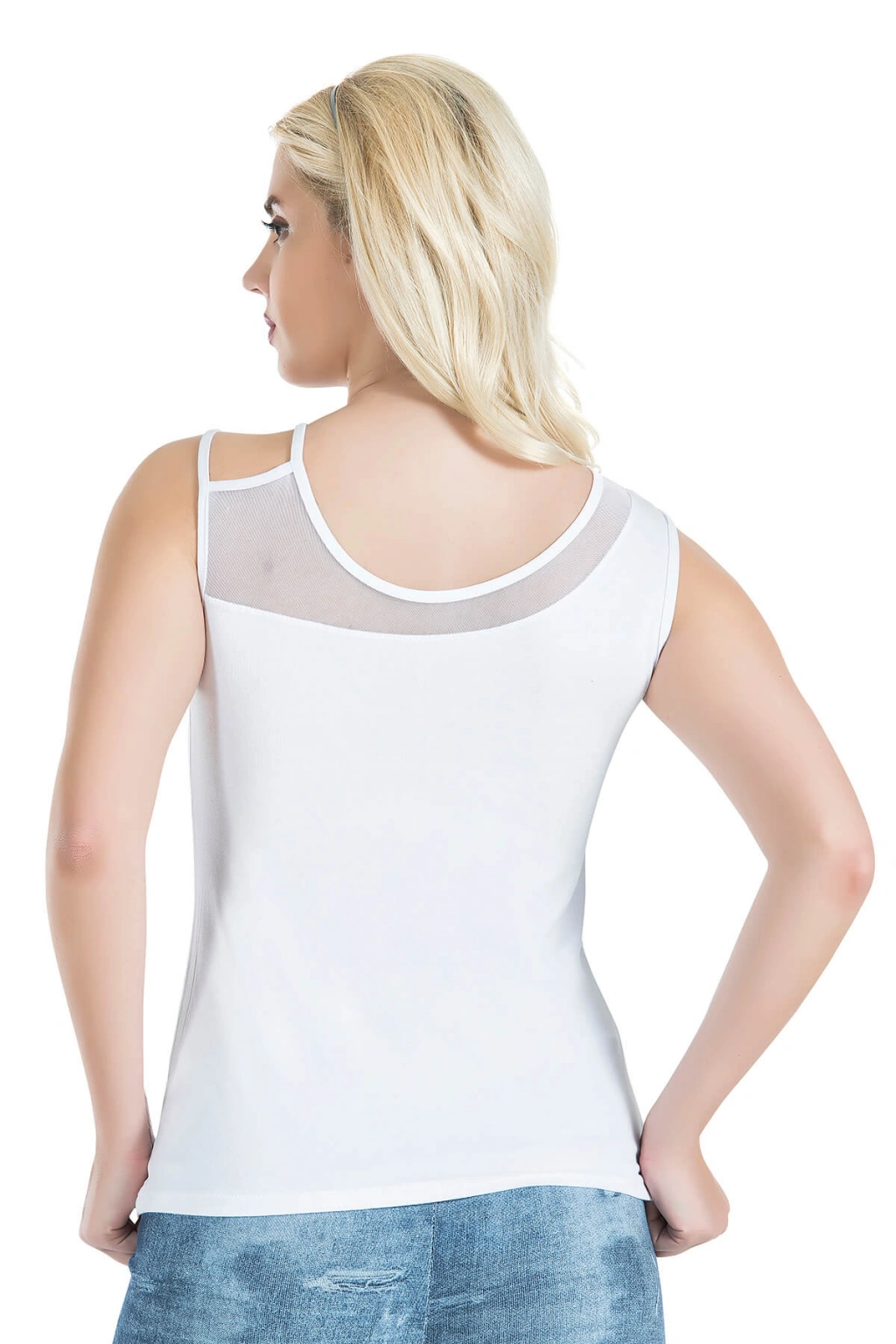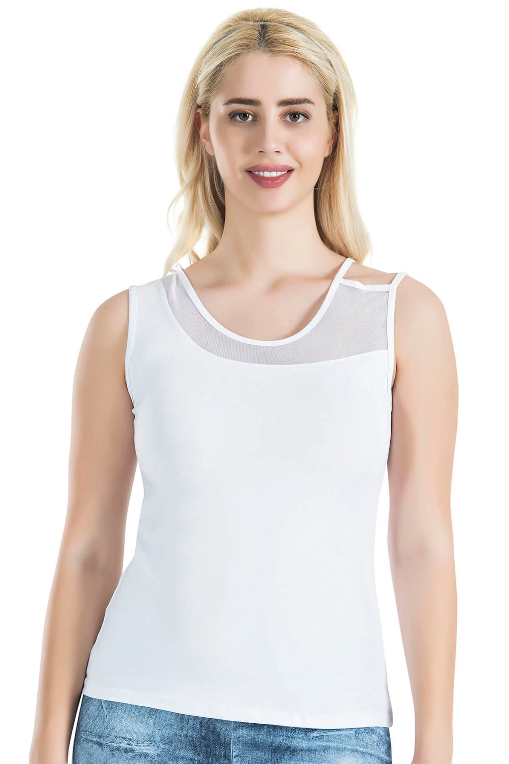 Sıfır kol geniş askılı yeni sezon transparan detaylı kadın atlet modelidir.Pamuklu ve likralı kumaştan üretilmektedir.