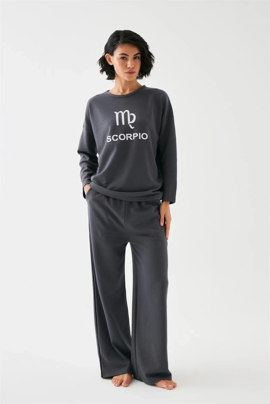 Çamaşır Kenti markasının özel tasarımı olan Kadın Füme Akrep Burcu Oversize 2 İplik Eşofman Ev Giyim Takımı, şıklığı ve rahatlığı bir arada sunuyor.