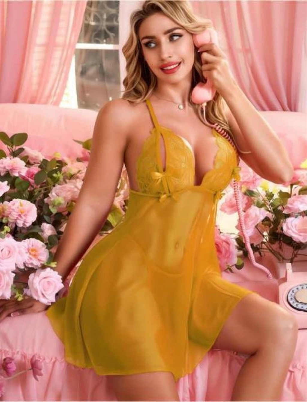 Dantel Ve Tül Detaylı Seksi Kadın Fantezi Gecelik Takımı