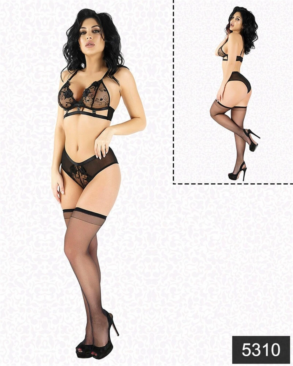 Özel Bölgeleri Açık Siyah Transparan Fantazi Sütyen Takımı Brf1307