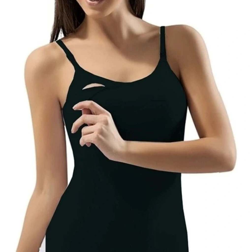 Likralı Pamuklu İp Askılı Siyah Atlet