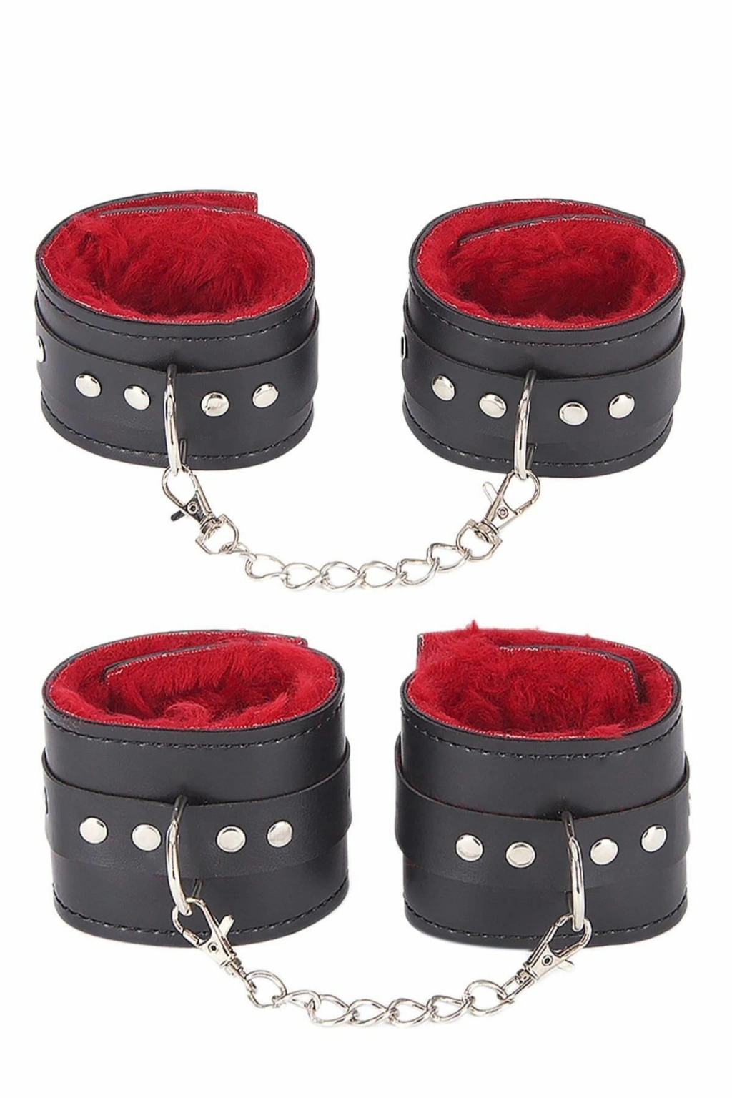 İçi Kırmızı Tüylü Kol Bacak Kelepce Set