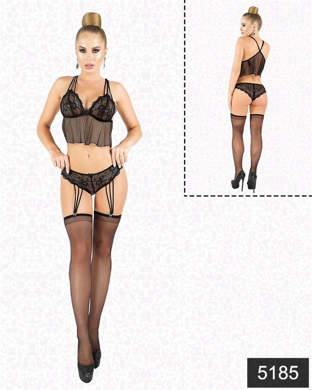 Dantelli Jartiyer String Ve Çorap 3'lü Takım