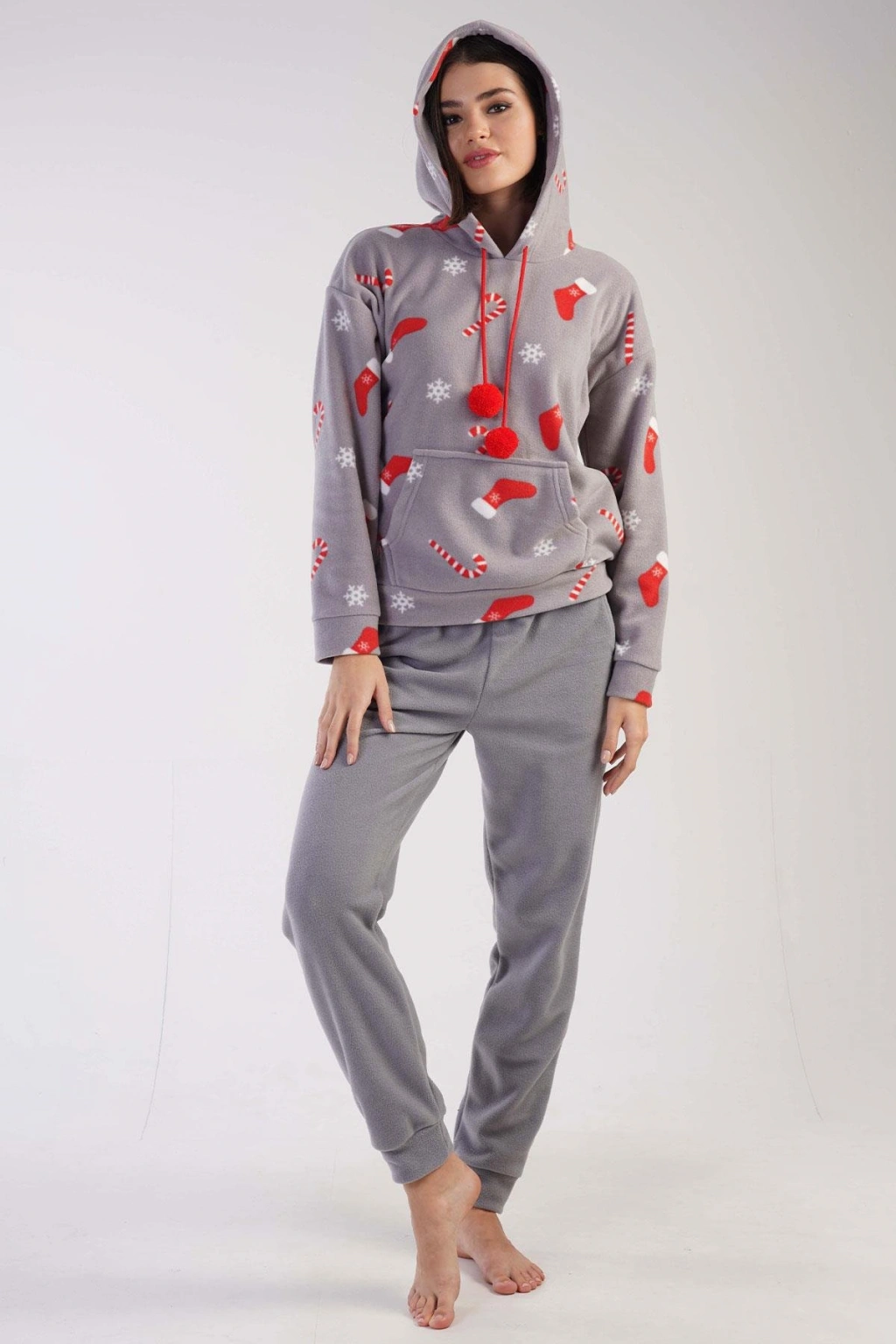 Kadın Mor Kalp Desenli Fiyonklu Kısa Kollu Uzun Pijama Takımı