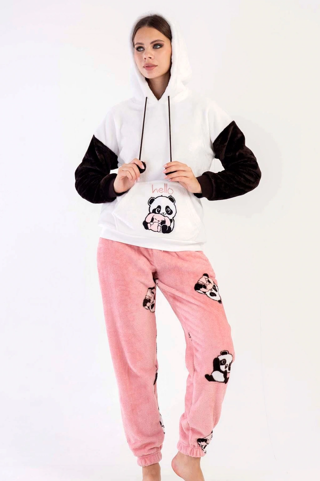 Kadın Siyah Uzun Kollu Fiyonklu Yuvarlak Yaka Mevsimlik Pijama Takımı