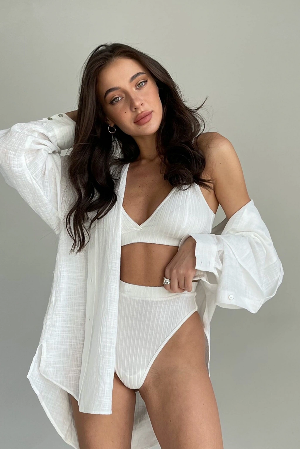 Kadın Beyaz Yüksek Bel Dolgusuz Slip Takım