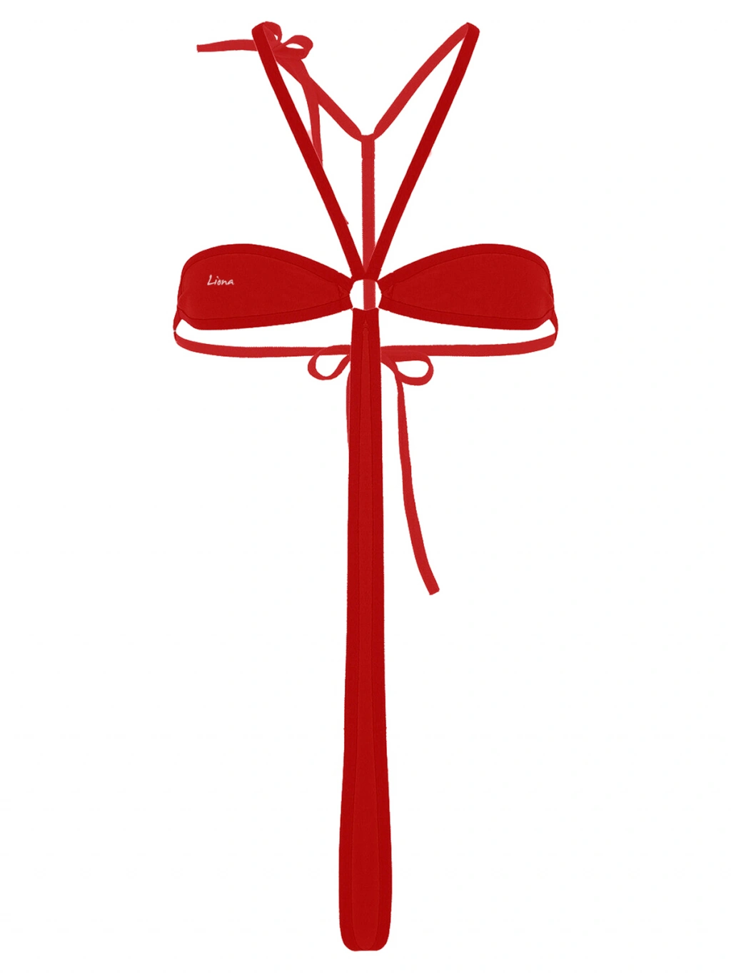 Kırmızı Siyah Desenli İnce Askılı Üçgen Kesim Crop