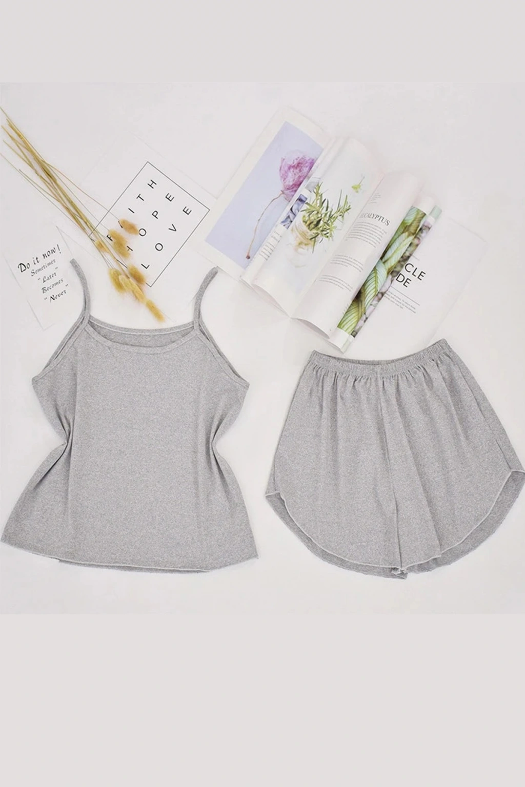 Kadın Gri Şortlu Penye Gecelik Takımı