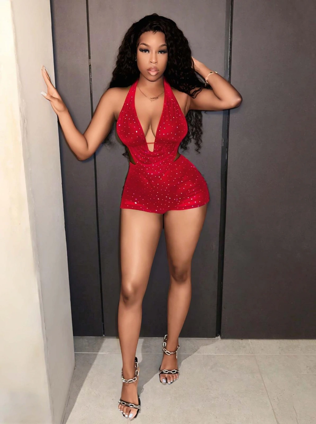 Kadın Kırmızı Fantezi Elbise Yandan Zincir Detaylı 5076