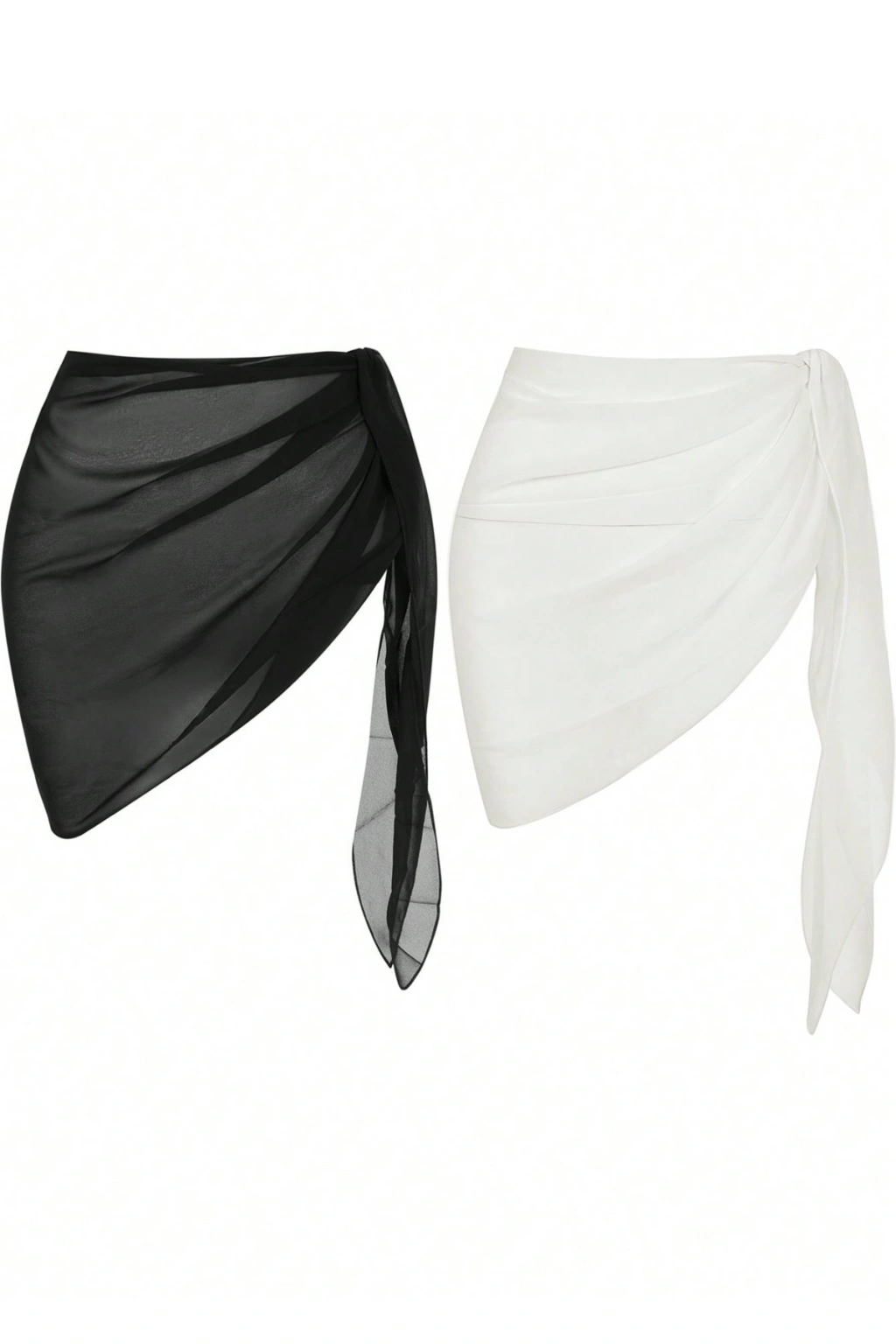 Kadın Siyah Beyaz Transparan Belden Bağlamalı Pareo 2'li
