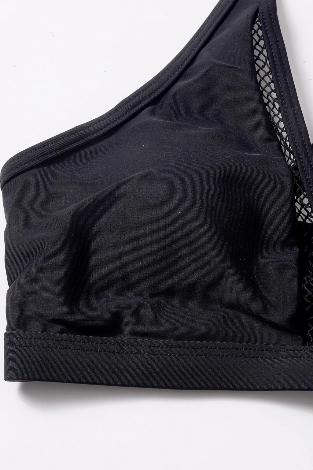 Kadın Siyah File Detaylı Özel Bikini Takımı