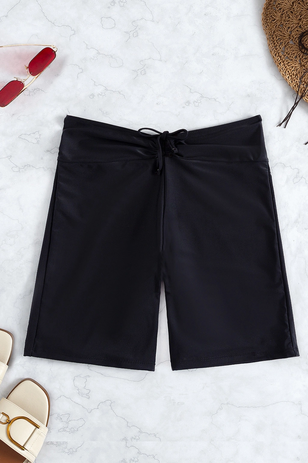 Kadın Siyah Önden Bağcıklı Deniz Şortu