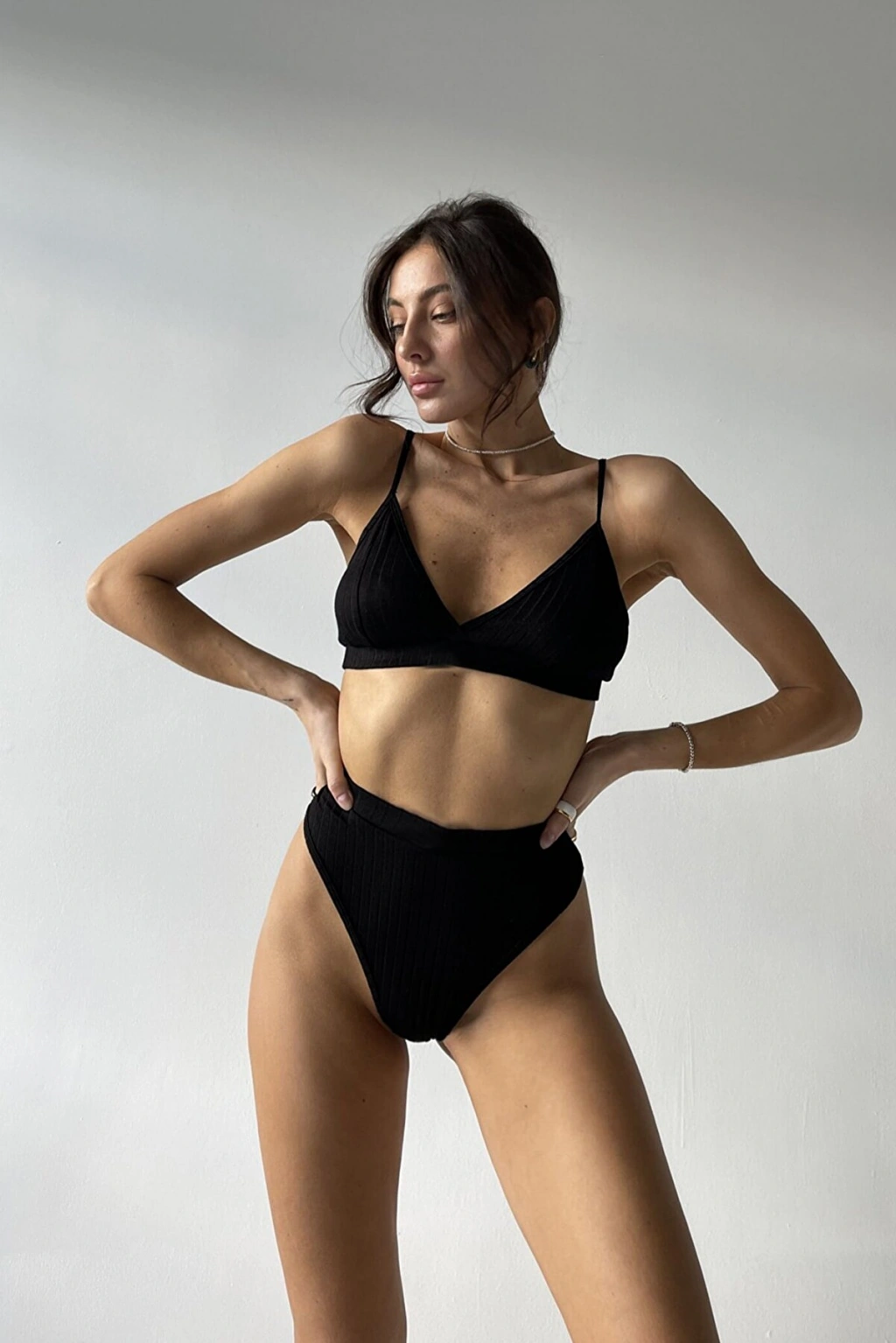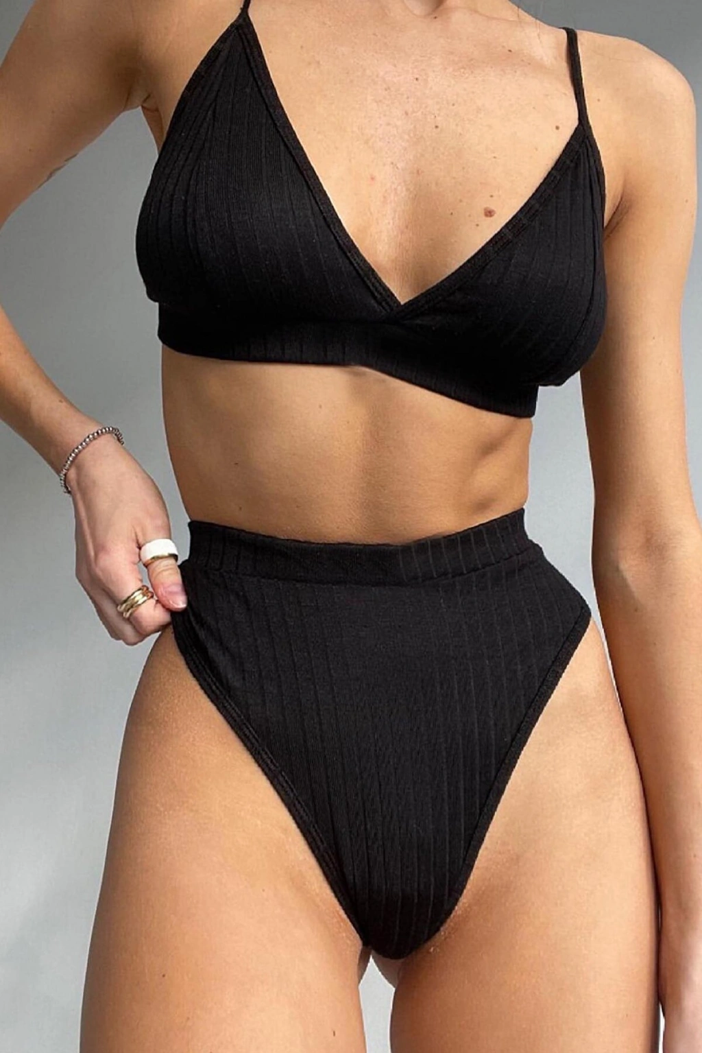 Kadın Siyah Yüksek Bel Dolgusuz Slip Takım