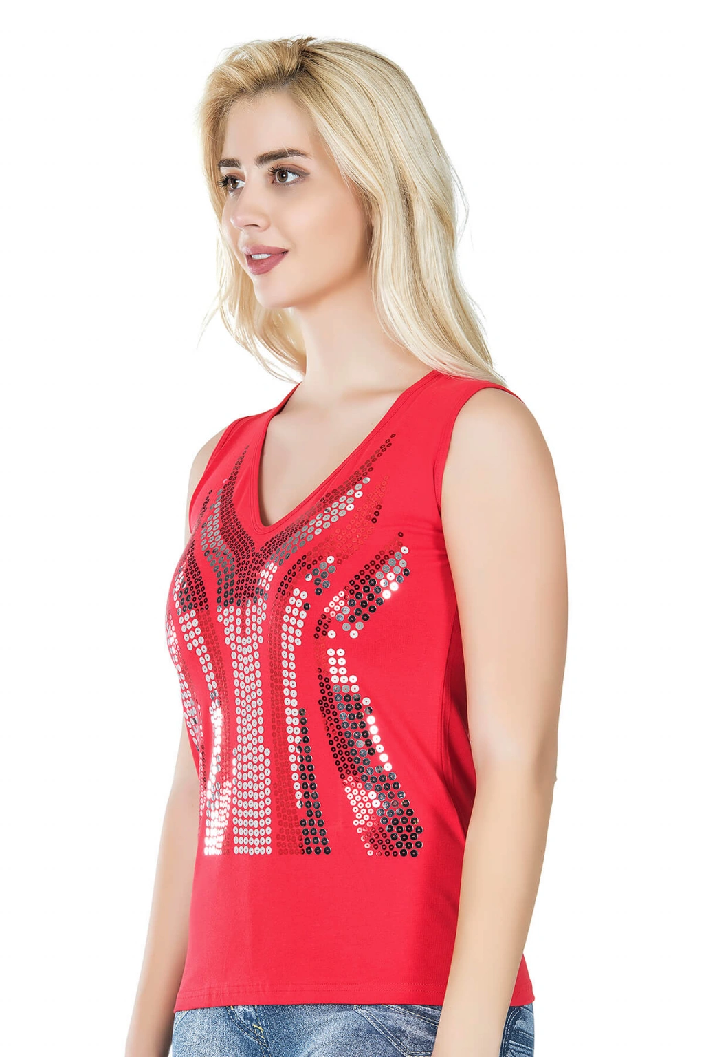 Pul işlemeli tasarımıyla şık bir görünüm kazandıran yeni sezon kadın tişört modelidir.