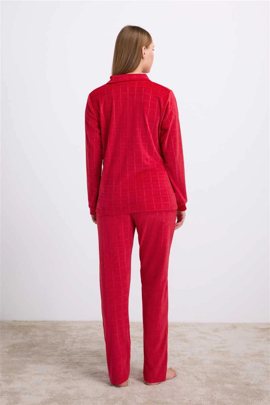 11565 Kadın Uzun Kol Sweatshirt ve Pantolon Takımı, zarif kırmızı rengiyle hem şık hem de konforlu bir görünüm sunuyor. Kadife dokusuna sahip yumuşak kumaşı, gün boyu konfor hissi sağlar. Fermuarlı üst kısmı sayesinde pratik bir kullanım imkânı sunarken, düz kesim pantolonu rahat bir oturuş ve hareket özgürlüğü sağlar.Ürün, %92 polyester ve %8 elastan karışımından üretilmiştir. Bu özel kumaş oranı, ürüne dayanıklılık, esneklik ve formunu koruma özelliği kazandırır. Cilde yumuşak bir şekilde temas eden kumaş, iç mekanlarda konforlu bir kullanım sunarken soğuk havalarda sıcak tutar. Evde dinlenme, misafir ağırlama veya rahat gezilerde şık bir ev giyimi alternatifi olarak tercih edilebilir.Kare desenli dokusu ve sade tasarımıyla klasik tarzı modern bir yorumla buluşturan bu takım, zasız bir parça olarak gardırobunuzun favorisi olmaya adaydır.Ürün Özellikleri:Ürün Kodu: 11565Marka: Kumaş İçeriği: %92 Polyester, %8 ElastanKumaş Tipi: Kadife görünümlü, yumuşak ve esnek kumaşRenk: KırmızıModel: Fermuarlı üst + düz kesim pantolonKalıp: Rahat kesimKullanım Alanı: Ev giyimi, loungewear, günlük rahat kullanımSezon: Sonbahar / KışBakım: 30°C’de hassas yıkama, düşük ısıda ütüleme önerilirÖne Çıkanlar:✔ Yumuşak ve sıcak tutan kadife dokulu kumaş✔ Esnek yapısıyla rahat hareket imkânı✔ Fermuarlı tasarımıyla pratik ve modern görünüm✔ Şık kırmızı rengiyle enerjik stil✔ Günlük ev konforunda şıklık arayanlar için ideal