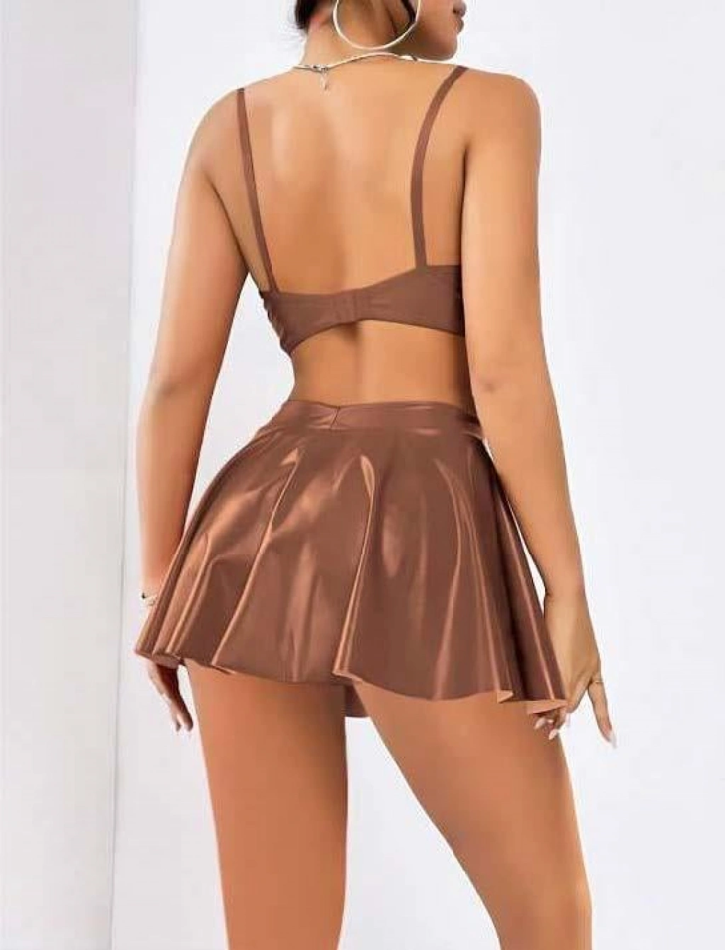 Kahverengi Etekli Fantezi Deri Şık Elbise