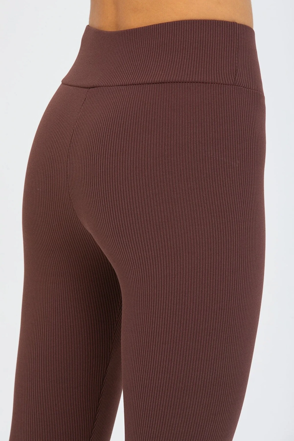 Kahve Mı Emay 3921 Soft Seamless Ripli Tayt Yoga Takımı