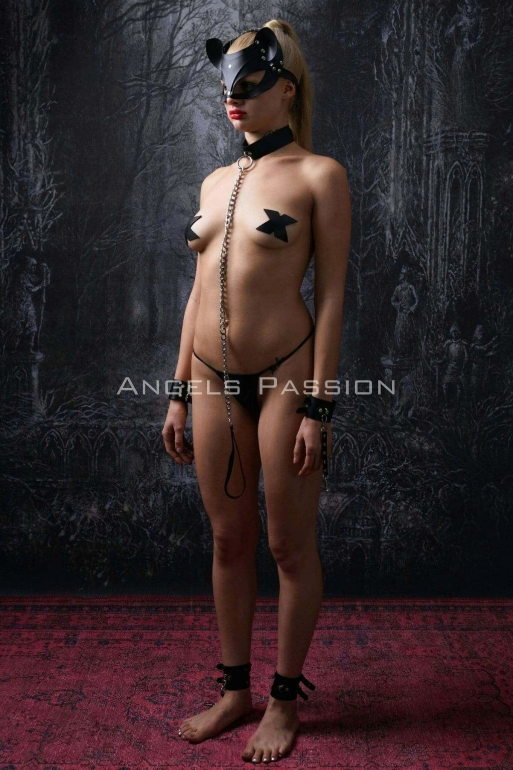 • Ürün ve paket içeriği: 6 parça (1 ad. maske, 1 ad. tasma, 2 adet el kelepçe, 2 adet ayak kelepçe) İç çamaşır ve göğüsucu kapatıcı dahil değildir.