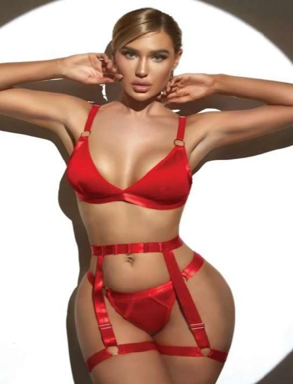Kırmızı Bacak Aksesuarlı Fantezi Jartiyer Takım