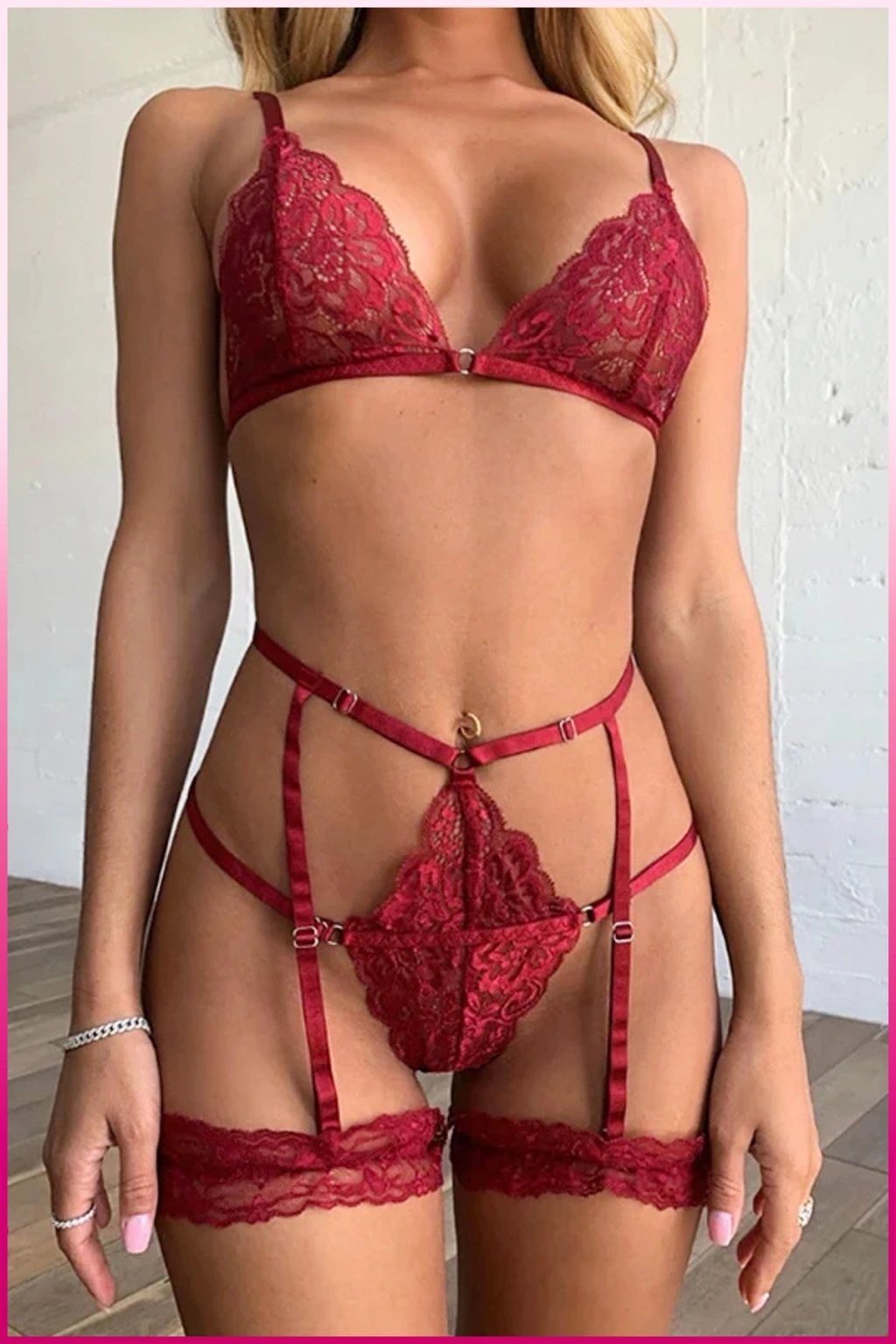 • Kırmızı Göğüs Dantelli Seksi Jartiyer Takım