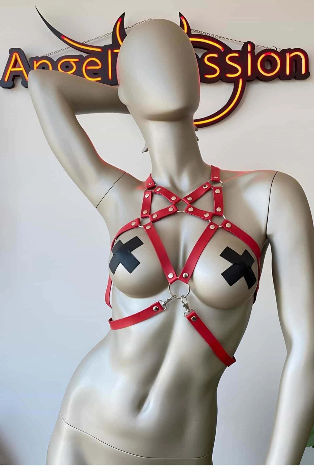 Kırmızı Göğüs Üzeri Takılan Deri Aksesuar