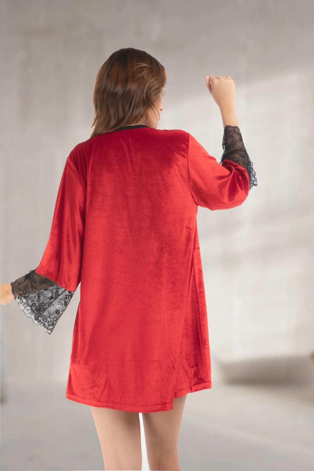 1442 Kadife Kırmızı Sabahlık Takım Üstün Kalitede Kumaşlardan üretilmiştir. Özel Paketinde Gönderilmektedir. Kumaş türü : %80 Kadife %20 Dantel Ürün içeriğ i : Gecelik + Sabahlık S/M - (36-38) L - (40) XL - (42) Bedenlere olmaktadır.