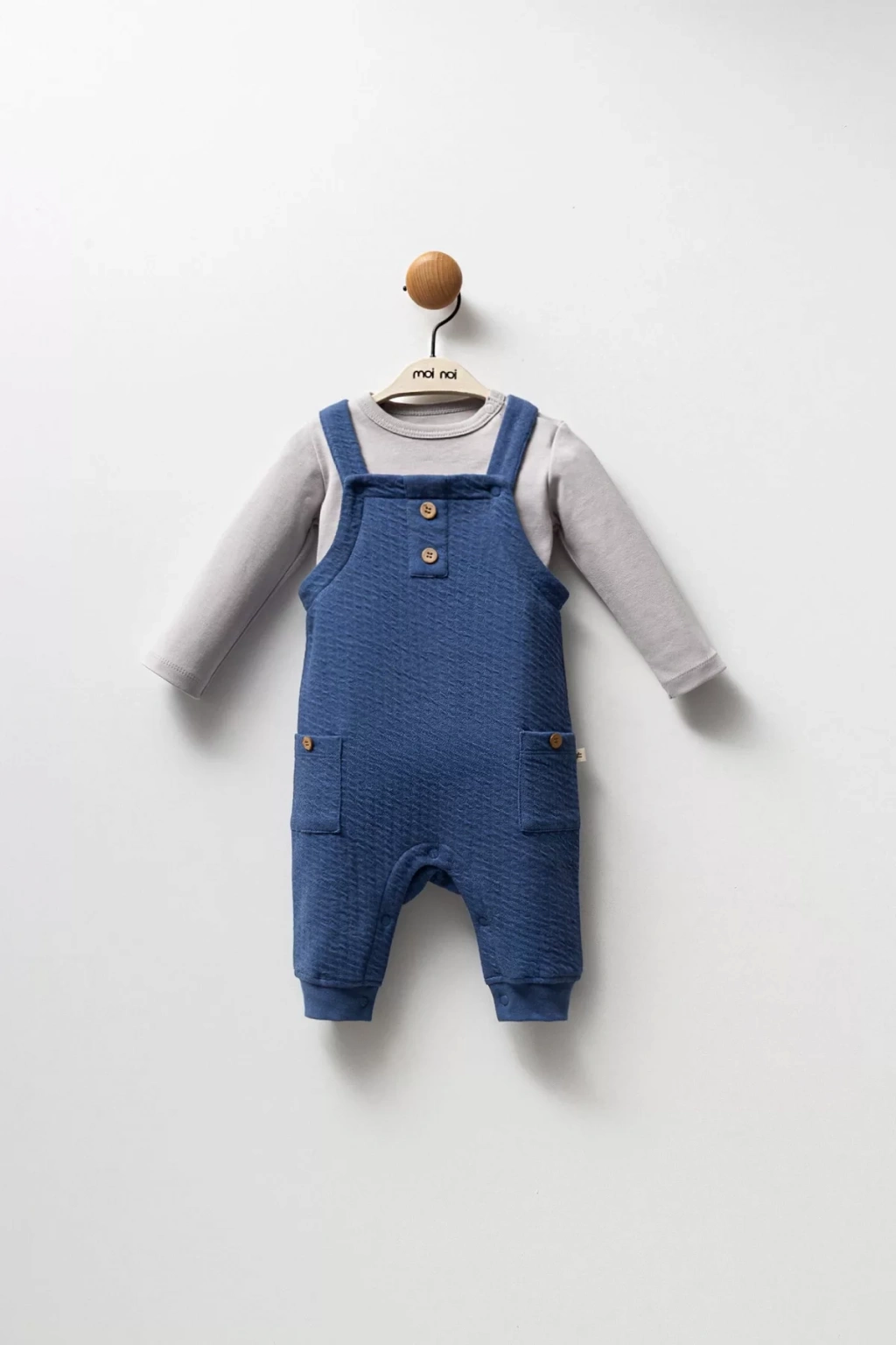 9,12,18 Ay Papyonlu Sweat Kot Pantolon 2li Erkek Bebek Salopet Takımı Lacivert